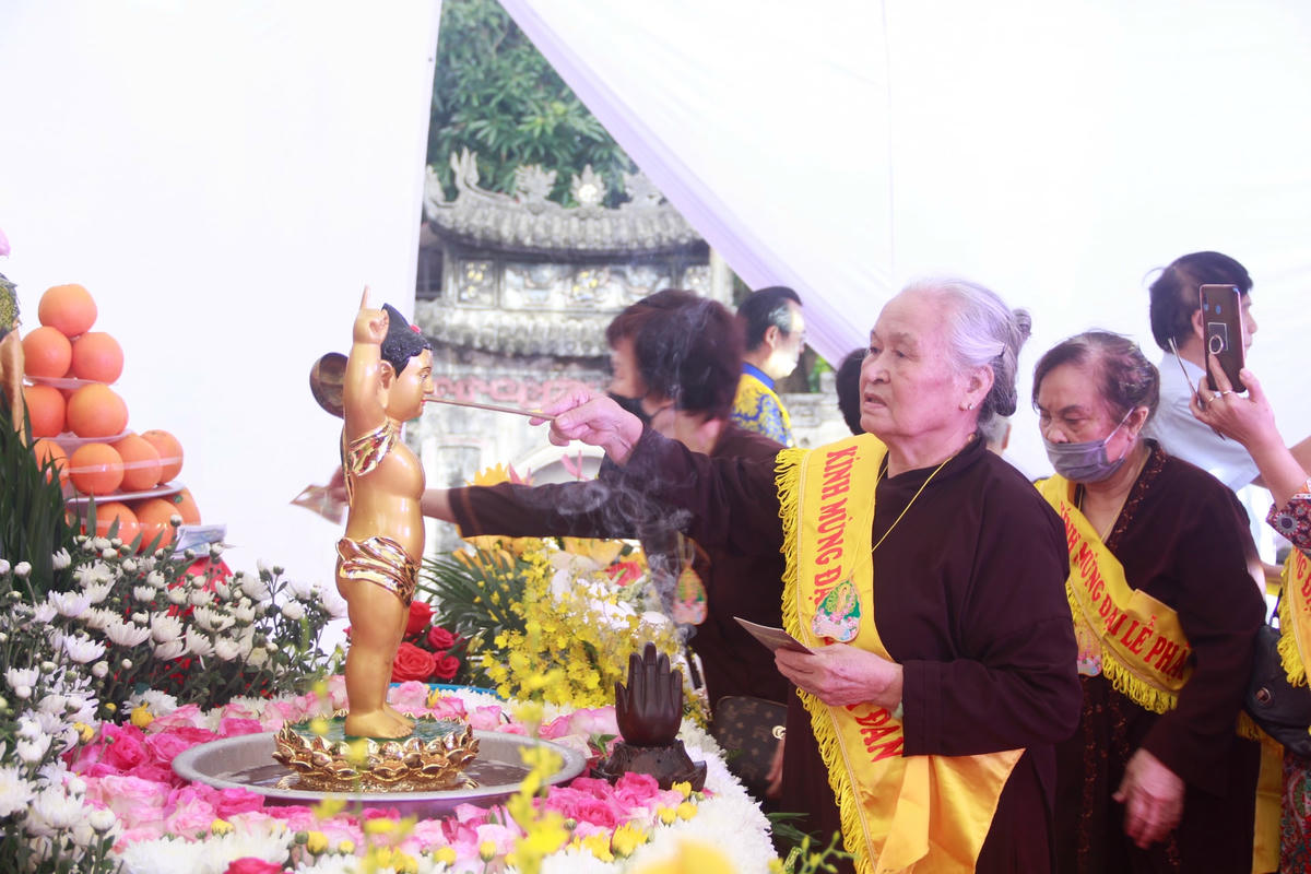 Sau chương trình văn nghệ ca ngợi đức Phật, buổi lễ đã diễn ra trong không khí trang nghiêm, thành kính. Thượng tọa Thích Quảng Thiện, Trưởng ban Trị sự Giáo hội Phật giáo huyện Gia Lâm đã đọc thông điệp Phật đản, Phật lịch 2566 của Đức quyền Pháp chủ Giáo hội Phật giáo Việt Nam, Trưởng lão Hòa thượng Thích Trí Quảng.