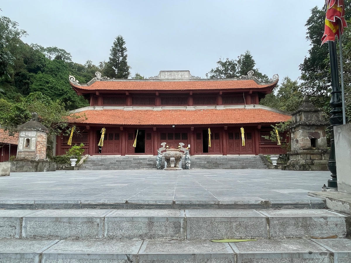 Mùa này, rừng phong ở núi Tam Ban đã nhuộm sắc đỏ, khung cảnh mang dáng dấp mùa thu châu Âu bao quanh mái chùa Thanh Mai cổ kính tạo nên sự yên bình, thanh tịnh và độc đáo.