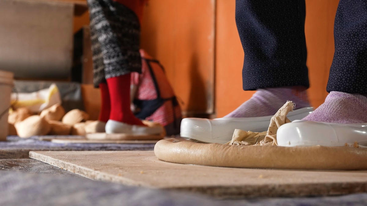 Để làm Nuruk, lúa mì khô được trộn với nước ấm. Sau đó, hỗn hợp này được bọc trong một miếng vải. Người làm rượu đi giày nhựa sạch, dẫm lên túi bột dằn phẳng thành hình chiếc bánh, sau đó để bánh lên men, phơi trong hai đến ba ngày. Sau đó, bánh men được bẻ vụn trộn với gạo nếp hấp và nước để ủ makgeolli.