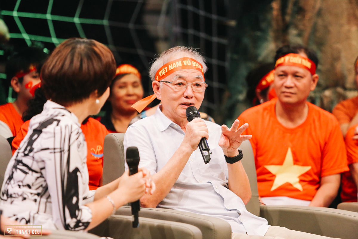 Chia sẻ với khán giả, ông Lập nhớ lại, lần đầu ông biết đá bóng là vào trận bão, bưởi trong vườn rụng, ông nhặt về sân đá bóng… bưởi cùng chúng bạn. Hồi đó ông nào đâu biết đấy là một kiểu đá bóng.