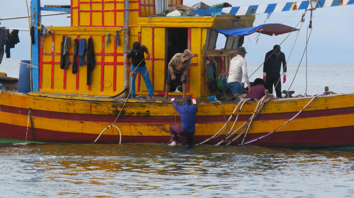 Cũng theo ông Triều, ông sinh ra và lớn lên ở vùng biển La Gi, gắn bó với nghề biển từ khi còn trẻ. “Ngày trước tôi cũng đi xa lắm, ra tận Trường Sa để câu cá ngừ, mực ống, cá mú đỏ và lặn ốc hoàng đế, bào ngư. Nhưng mấy năm gần đây có tuổi rồi, không đi biển xa được nữa và cũng không lặn được. Thế là hùn tiền với cậu em vợ mua cái ghe này. Ghe nhỏ thôi nhưng cũng nhiều bạn ghe ưng bụng mà đi cùng. Tiền xăng dầu, cơm nước tôi lo hết. Mỗi ngày ăn ba bữa dù chỉ tầm 2 giờ chiều là về lại cảng rồi. Mà tôi cũng chỉ xin ăn chia 3-7 với thợ lặn thôi”, ông Triều kể thêm.
