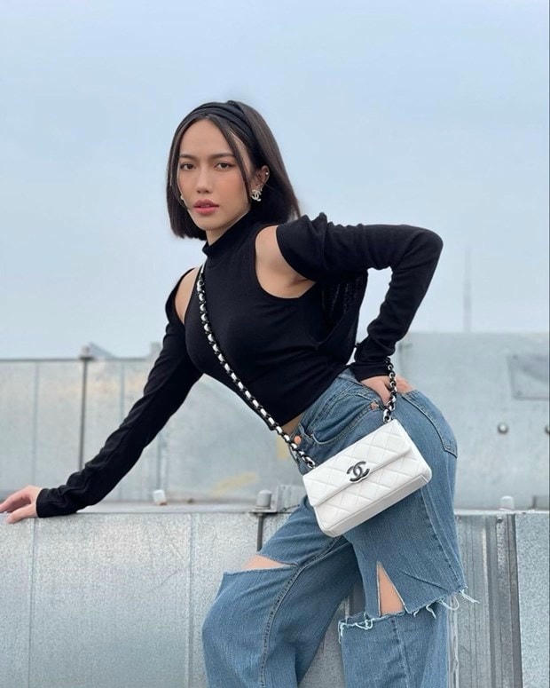 Diệu Nhi phá vỡ hình tượng bằng những thiết kế ''hot trend''. Từ áo cut-out tới quần jeans rách ống rộng đều là những trang phục đề cao cá tính dạn dĩ. Cô nàng còn mix băng đô tóc như xu hướng những năm 2000, đem đến màu sắc mới lạ cho bản phối bụi phủi.