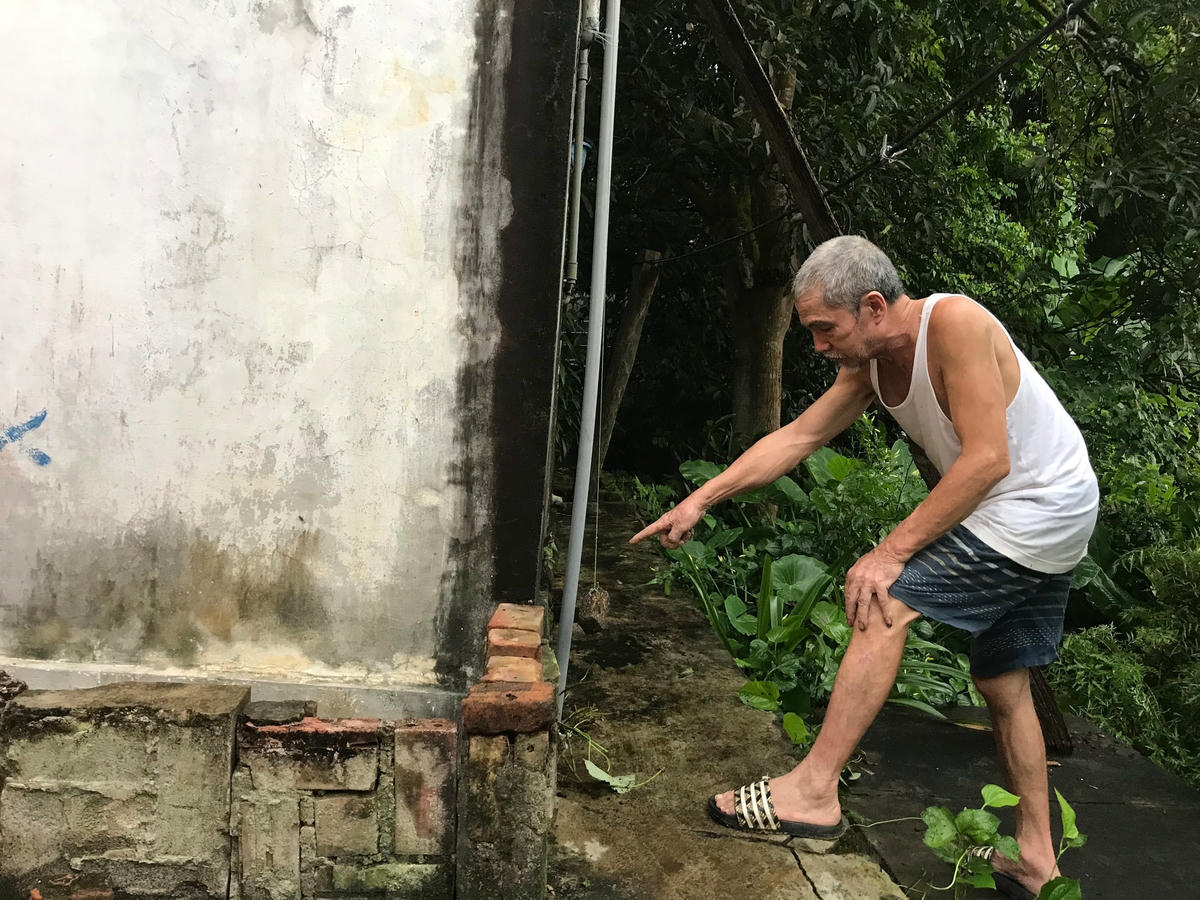 Hơn 3 năm qua, vợ chồng ông Phan Huy Ngọc (66 tuổi) bản Minh Tiến có nhà ở sát sông Dinh hết sức lo lắng trước tình trạng sạt lở tại khu vực này. Chỉ tay về phía khu đất đã trôi xuống sông Dinh từ 3 năm trước, ông Ngọc cho biết, hàng chục năm qua, khi Thủy điện Châu Thắng chưa xuất hiện, tình trạng sạt lở chưa từng xảy ra, dù vào mùa mưa lũ. Vậy nhưng, gần 5 năm nay mảnh đất của gia đình bị dòng sông “gặm nhấm” ăn sâu vào tận móng nhà. “Sạt lở nặng nhất là từ năm 2019, sau trận xả lũ của thủy điện, toàn bộ diện tích đất phía sau nhà tôi bị nước sông cuốn trôi. Ngay sau đó, hiện tượng nứt nẻ nhà cửa diễn ra ngày càng nguy hiểm” - ông Ngọc lo lắng nói.