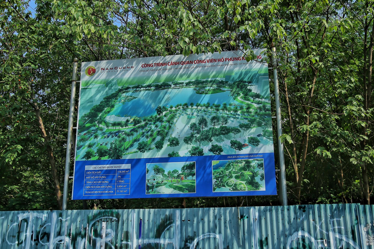 Dự án Công viên hồ điều hòa Phùng Khoang có địa chỉ tại phường Trung Văn, quận Nam Từ Liêm do Công ty cổ phần đầu tư và xây dựng đô thị cùng Tổng công ty Đầu tư và Phát triển nhà Hà Nội (Handico) động thổ xây dựng từ ngày 8/10/2016, dự kiến hoàn thành vào năm 2017.Tuy nhiên, sau gần 7 năm thi công, dự án công viên điều hòa Phùng Khoang vẫn chưa thể hoàn thành, đang được quây tôn gây lãng phí.Đặc biệt, tại Hà Nội, thực trạng thiếu không gian công cộng và chỗ vui chơi, giải trí cho người dân luôn là vấn đề cấp thiết và được bàn luận nhiều năm qua.Theo thiết kế, công viên hồ điều hòa Phùng Khoang được thiết kế theo phong cách sân golf cao cấp. Theo giới thiệu, với phong cách thiết kế này, công viên tạo được điểm nhấn sang trọng nhưng gần gũi với môi trường, cảnh quan, tạo cảm hứng sáng tạo và tận hưởng cuộc sống ý nghĩa cho cư dân giữa lòng Thủ đô.Công viên Phùng Khoang nằm trong khuôn viên khu đô thị mới Phùng Khoang; phía Bắc giáp mương Mễ Trì, khu đô thị Vinhomes; phía Tây giáp với Bệnh viện Y học cổ truyền - Bộ Công an, phía Nam giáp với đường Tố Hữu…Dự án có tổng diện tích gần 12 ha, trong đó, diện tích mặt hồ 7,1 ha, diện tích cây xanh cảnh quan chiếm 4,8 ha và chiều dài bờ kè dài 1,075 m. Theo ghi nhận của PV Báo Đại Đoàn Kết Online, 4 bề của dự án Công viên Phùng Khoang (phía đường Tố Hữu) đang được quây tôn kín mít, phía bên trong cỏ mọc um tùm.Dù dự án đã chậm tiến độ nhiều năm, nhưng đến nay vẫn cửa đóng then cài "án binh bất động".Nhiều hạng mục bên trong công viên dù chưa hoàn thiện nhưng PV không hề bắt gặp công nhân, máy móc hoạt động. Việc dự án chậm tiến độ, quây rào tôn gây mất mỹ quan đô thị.Theo đơn vị đầu tư, công viên được thiết kế theo phong cách sân golf cao cấp với đầy đủ các tiện ích nội khu như: khu quảng trường vui chơi, khu khách sạn, nhà hàng bến thuyền, đường dạo nội bộ, đầm sen, rừng thông, đài phun nước… Với phong cách thiết kế này, công viên hồ điều hòa Phùng Khoang được kỳ vọng tạo điểm nhấn sang trọng nhưng gần gũi với môi trường, cảnh quan, tạo cảm hứng sáng tạo và tận hưởng cuộc sống ý nghĩa cho cư dân giữa lòng Thủ đô.Hệ thống cây xanh bên trong công viên Phùng Khoang đã được trồng bao quanh hồ.
