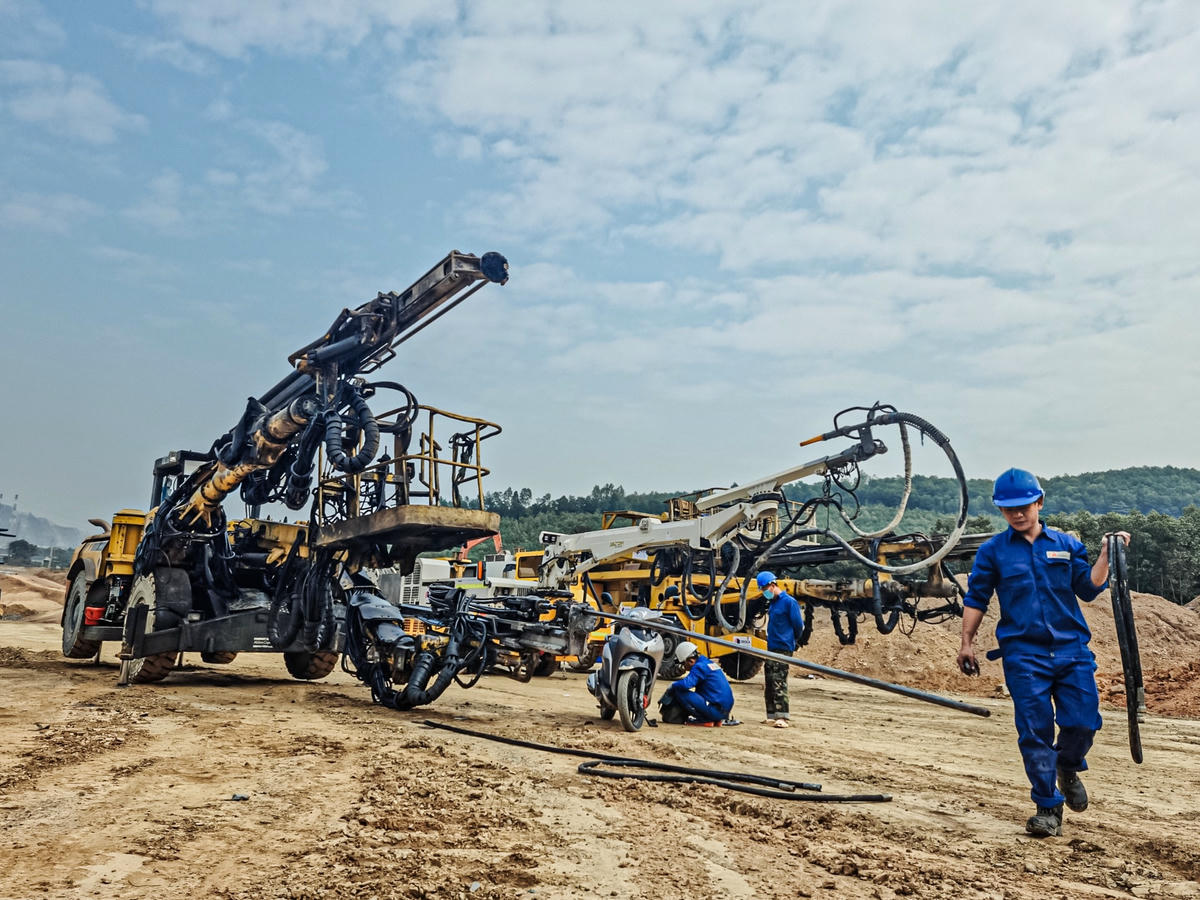 Dự án thành phần đầu tư xây dựng đoạn Nghi Sơn - Diễn Châu có chiều dài 50 km, điểm đầu là Km 380+00 thuộc thị xã Nghi Sơn, Thanh Hóa; điểm cuối tại Km 430+00, xã Diễn Cát, huyện Diễn Châu, Nghệ An. Trong đó, đoạn qua địa phận tỉnh Thanh Hóa dài 6,53 km.Theo ghi nhận của PV Báo Đại Đoàn Kết, tại đoạn tuyến qua địa phận xã Trường Lâm, thị xã Nghi Sơn (Thanh Hóa) thuộc gói thầu XL01, hiện các đơn vị thi công tập trung tối đa thiết bị máy móc, vật tư để thi công.Theo kỹ sư Trần Văn Cường cho biết: “Hầm Trường Vinh được áp dụng công nghệ của Áo, viết tắt là NATM (New Austrian Tunneling Method) - đào hầm bằng phương pháp khoan nổ, được chống đỡ bằng néo kết hợp với bê tông phun”.Ông Nguyễn Ngọc Tú - Chỉ huy trưởng thi công cửa hầm phía Bắc thuộc Công ty cổ phần Tập đoàn Đèo Cả cho biết, hầm Trường Vinh có chiều dài 450m, hiện đã khoan được 1 nhánh hầm 14 m và 1 nhánh 15 m. Hầm được khởi công từ đầu tháng 11/2021, theo tiến độ đã cam kết với chủ đầu tư sẽ thông nhánh hầm đầu tiên vào tháng 5/2022, ống còn lại sẽ thông vào tháng 6/2022. Đến tháng 11/2022 sẽ tiến hành phun bê tông vòm hầm.“Thời gian đầu triển khai dự án gặp không ít khó khăn do đường giao thông, đường công vụ. Nhưng được sự hỗ trợ của chính quyền địa phương, những khó khăn này đã được khắc phục, tạo điều kiện thuận lợi cho nhà thầu thi công."Bên cạnh đó, dịch Covid-19 diễn biến phức tạp cũng ảnh hưởng đến việc vận chuyển máy móc, vật tư. Tuy nhiên, chúng tôi cố gắng sẽ đáp ứng được tiến độ dự án như đã cam kết" - ông Tú nói.Dự án thành phần đoạn Nghi Sơn - Diễn Châu là dự án được chuyển đổi từ hình thức đầu tư PPP sang đầu tư công. Trong giai đoạn phân kỳ, dự án thi công xây dựng với quy mô 4 làn xe, nền đường 17 m, vận tốc thiết kế 80 km/h. Giai đoạn hoàn chỉnh sẽ nâng lên 6 làn xe, nền đường 32,25 m, vận tốc thiết kế từ 100 - 120 km/h. Tổng mức đầu tư giai đoạn phân kỳ là 7.293,22 tỷ đồng.Theo Ban QLDA 6, đến nay, dự án đang đồng loạt triển khai 36 mũi thi công, với hơn 600 cán bộ kỹ sư, công nhân trên công trường, 265 thiết bị thi công (120 máy xúc đào, 60 máy ủi, 70 lu rung các loại, 15 thiết bị khoan cọc nhồi),... Sau 4 tháng triển khai thi công, tiến độ đạt 7,6% tổng giá trị hợp đồng, không bao gồm cả dự phòng, tiến độ đáp ứng yêu cầu so với kế hoạch hết tháng 12 (8,5%).