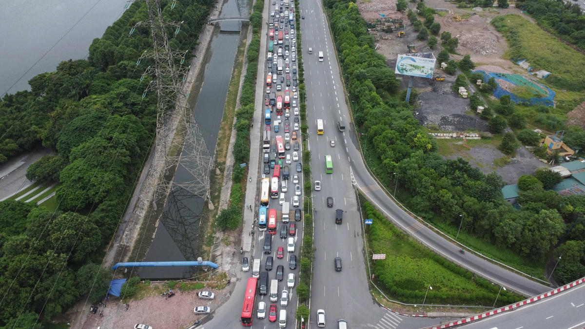 Tại đường Trường Chinh lúc 7h sáng 5/9 dòng phương tiện nối đuôi nhau di chuyển.Mật độ các phương tiện tham gia giao thông tăng cao tại các ngả đường nối vào nội đô.Do ùn tắc kéo dài các phương tiện thi nhau nối đuôi di chuyển trên vỉa hè.Ngày 5/9 cũng trùng với ngày các em nhỏ đi khai giảng năm học mới nên tuyến đường nào cũng tấp nập, ùn ứ.Tại tuyến đường Nguyễn Trãi ùn tắc kéo dài.Tại khu vực trước cổng bến xe Nước Ngầm lúc 8h sáng cũng xảy ra ùn tắc kéo dài.Tuyến đường cao tốc Pháp Vân - Cầu Giẽ hướng về nội đô lúc 8h30.