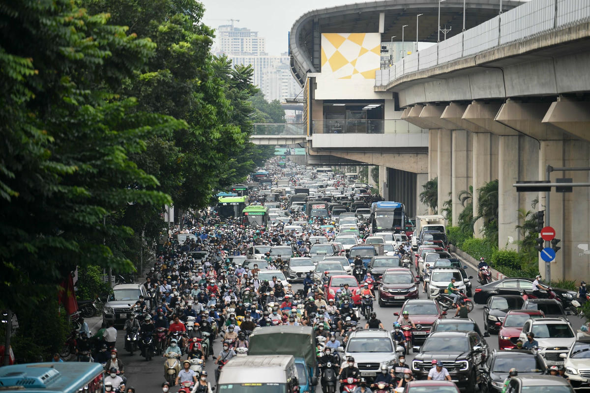 Kết thúc kỳ nghỉ lễ 2-9, mật độ người và phương tiện tham gia giao thông tăng cao, tình trạng ùn ứ lại kéo dài ở Hà Nội.