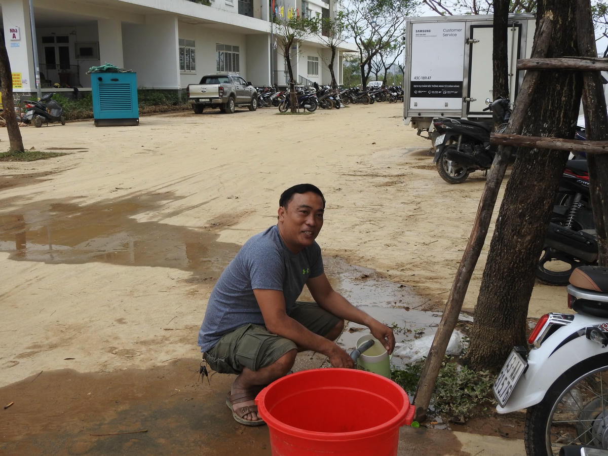 Sau trận mưa gây ngập lụt vào chiều và đêm 14/10 do ảnh hưởng của bão số 5, người dân tại 8 khu chung cư trên địa bàn các quận, huyện của Đà Nẵng rơi vào cảnh không điện, thiếu nghiêm trọng nước sinh hoạt. Để duy trì sinh hoạt tối thiểu hàng ngày, các hộ dân phải hứng nước từ vòi nước tưới cây công cộng
