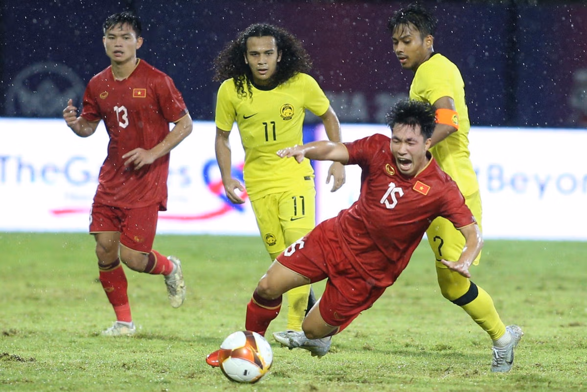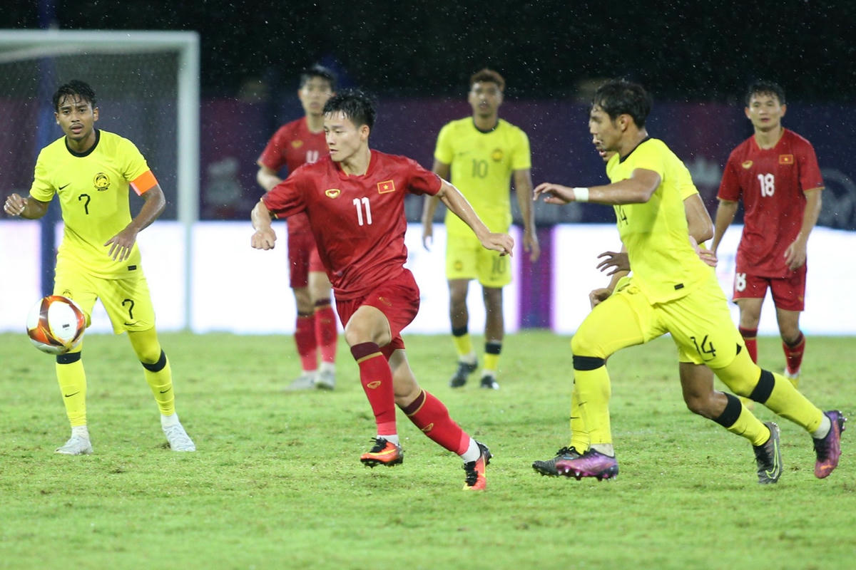 U22 Việt Nam gặp khó khăn trong màn so tài với U22 Malaysia ở bảng B SEA Games 32 trên sân Prince.
