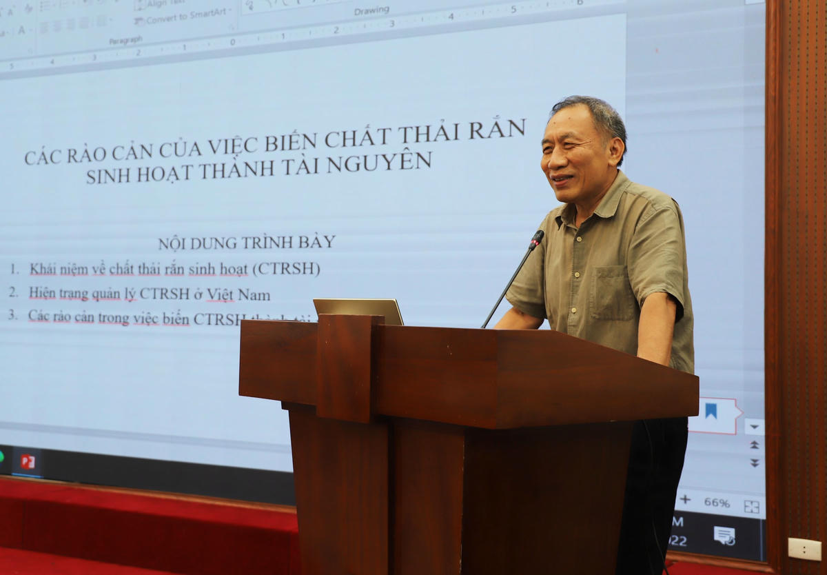 Trình bày chuyên đề “Các rào cản của việc biến chất thải rắn sinh hoạt thành tài nguyên”, PGS.TS Lưu Đức Hải, Chủ tịch Hội Kinh tế Môi trường Việt Nam cho biết, chất thải rắn sinh hoạt là nguồn gây ô nhiễm môi trường ở Việt Nam, nhưng cũng là nguồn tài nguyên có giá trị sau khi được phân loại. Do sự đa dạng về thành phần nhưng không được phân loại nên phương án xử lý đang được triển khai ở Việt Nam là chôn lấp ở bãi rác cho thấy sự không hợp lý, trong khi kinh phí thu gom và xử lý chất thải rắn sinh hoạt hiện nay ở Việt Nam chủ yếu dựa vào ngân sách nhà nước.