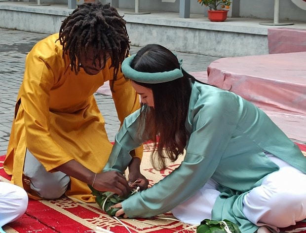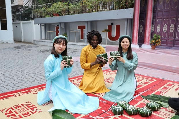 Trong dịp Tết Nguyên đán Quý Mão, nhiều sinh viên quốc tế cho hay rất thích thú và ấn tượng khi có cơ hội trải nghiệm nét văn hóa truyền thống độc đáo của Việt Nam như gói bánh chưng, bày mâm ngũ quả.