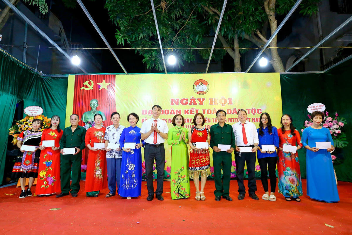 Nhân dịp này, 20 gia đình, cá nhân ở khu dân cư số 16 có thành tích xuất sắc được khen thưởng. 10 hộ gia đình có hoàn cảnh khó khăn được quận Cầu Giấy tặng quà hỗ trợ.