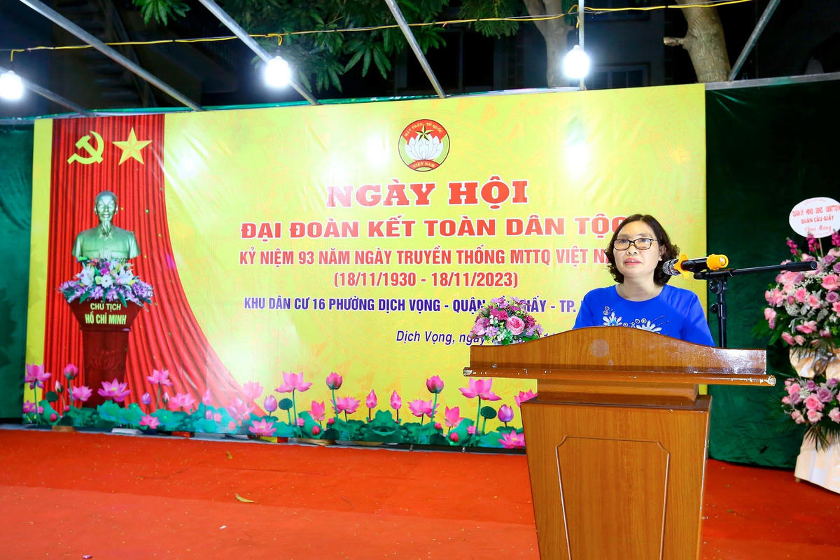 Phát biểu tại Ngày hội, bà Lê Thị Thuỷ, Trưởng Ban Tuyên giáo Quận ủy Cầu Giấy ghi nhận và biểu dương những kết quả tổ dân phố số 16 đã đạt được trong thời gian qua.