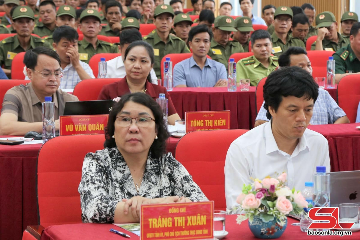 Tại huyện Sốp Cộp, đồng chí Tráng Thị Xuân, Ủy viên Ban Thường vụ Tỉnh ủy, Phó Chủ tịch Thường trực UBND tỉnh dự Lễ ra mắt lực lượng tham gia bảo vệ an ninh, trật tự ở cơ sở.