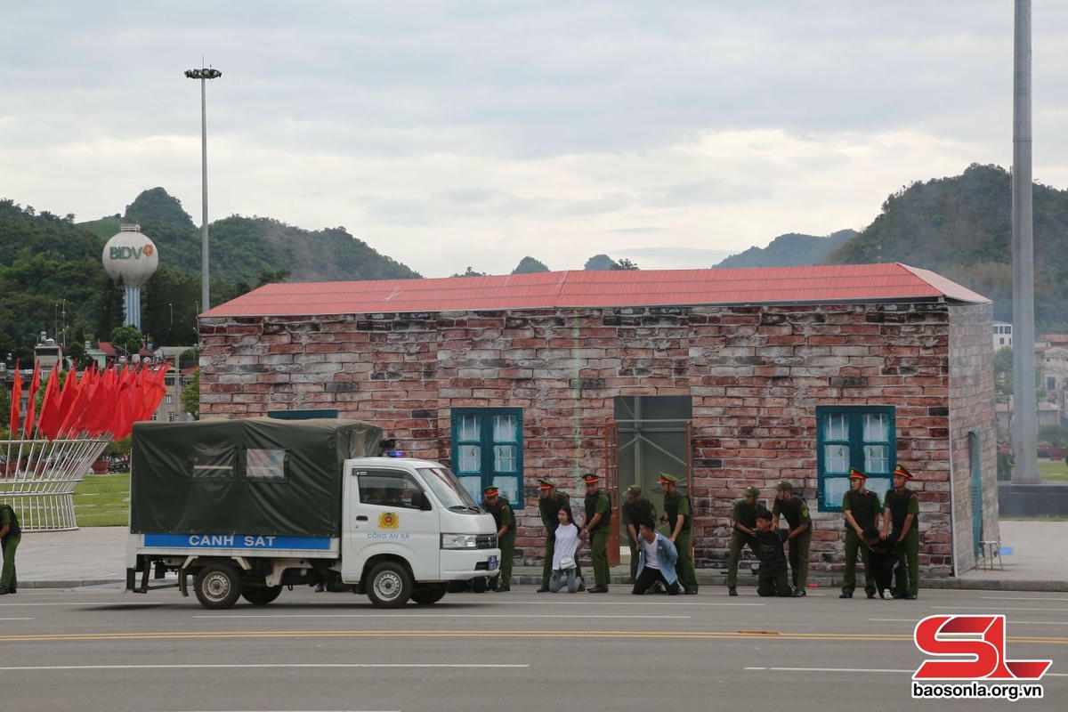 Sau phần diễu hành, diễn ra nội dung diễn tập thực binh 3 tình huống tham gia bảo vệ ANTT ở cơ sở, gồm: Hoạt động của lực lượng bảo vệ ANTT ở cơ sở trong việc phối hợp tuyên truyền, vận động nhân dân chấp hành chủ trương giải phóng mặt bằng triển khai thực hiện các dự án không phải cưỡng chế; do mẫu thuẫn trong gia đình (người chồng có hành vi bạo lực) dẫn đến việc đốt nhà và lực lượng bảo vệ ANTT có mặt kịp thời huy động nhân dân dập tắt đám cháy, cấp cứu người bị nạn, cứu tài sản; lực lượng công an xã, phường phối hợp lực lượng bảo vệ ANTT ở cơ sở tuần tra, kiểm soát tại địa bàn phát hiện, bắt giữ đối tượng mua bán, tàng trữ trái phép chất ma túy.