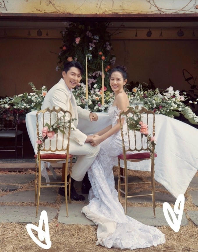 Trên trang mạng cá nhân của mình, Son Ye Jin đã đăng tải một tấm hình chưa từng tiết lộ trước đây trong bộ ảnh cưới với Hyun Bin. Phía dưới bức ảnh, nữ diễn viên chỉ viết thêm dòng chữ đơn giản: "Kỷ niệm năm đầu tiên" cùng hai trái tim bên cạnh. Bức ảnh cho thấy vẻ đẹp mĩ miều của Son Ye Jin trong chiếc váy cưới thướt tha cùng nụ cười rạng ngời của cặp đôi diễn viên này.