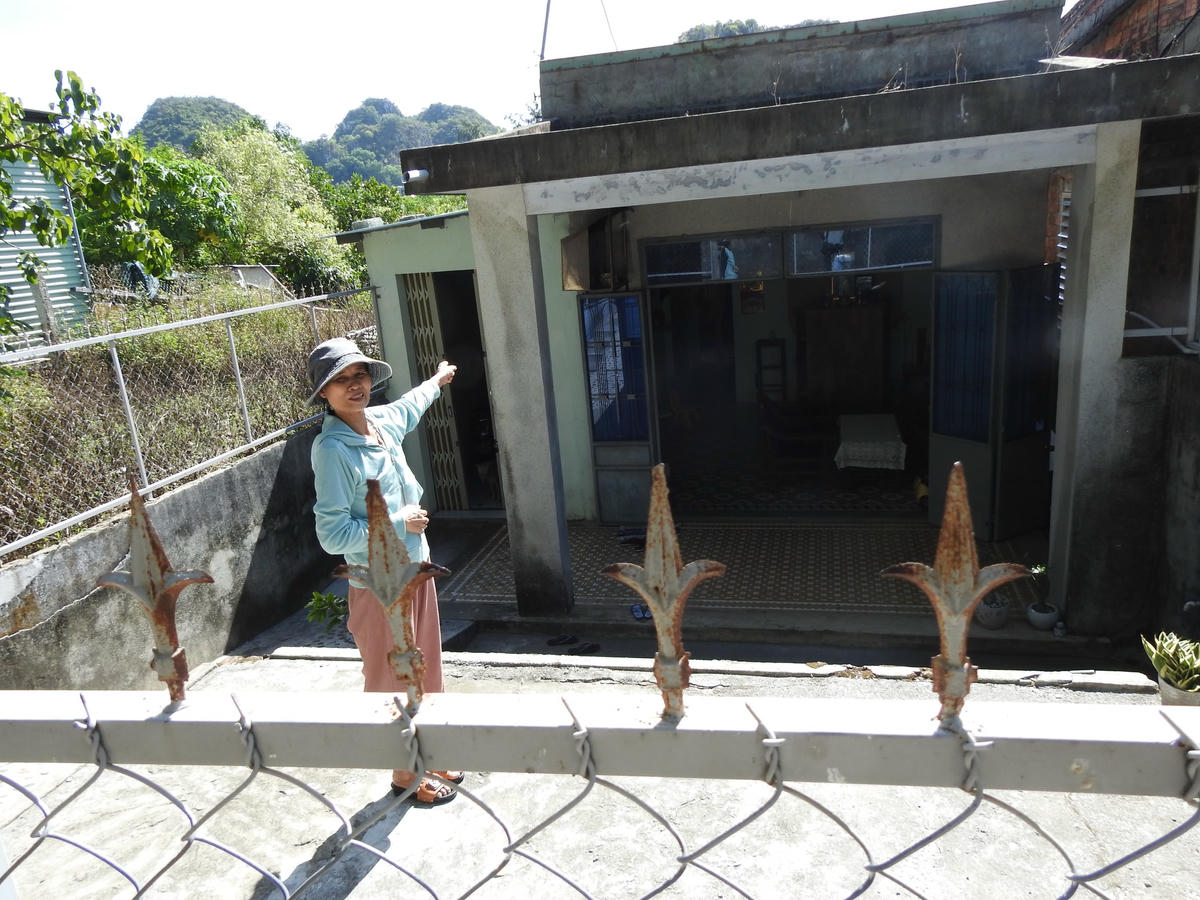 Ở tổ dân phố 20 phường Hòa Hải, chúng tôi gặp bà Nguyễn Thị Quế trong căn nhà nằm tụt sâu so với mặt đường. Theo lời bà Quế, vợ chồng bà mua 137m2 đất làm nhà ở đây từ năm 1996. Do vướng quy hoạch nên từ năm 2010 đến nay căn nhà không thể sửa chữa trong khi nhân khẩu trong gia đình lại tăng thêm. Cả gia đình 6 người, kể cả con dâu và cháu nội, phải chấp nhận sống trong cảnh chật chội.