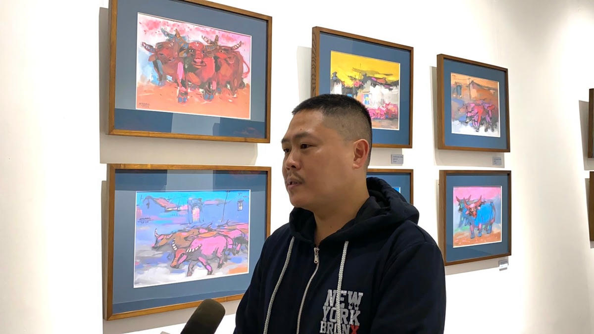 Hoạ sĩ Nguyễn Quốc Thắng chia sẻ, “Sóng tưởng chừng đơn giản nhưng có lúc cũng có sự thay đổi, lúc thì yên bình, khi thì dữ dội và màu sắc cũng như vậy. Hình ảnh con trâu không nhất thiết phải gắn với màu tối màu, màu ghi, những tác phẩm trâu tôi mang đến triển lãm là hình ảnh trâu của Tết. Hình ảnh trâu Tết với những gam màu sắc nóng, đây chính điểm mạnh trong những tác phẩm này”.
