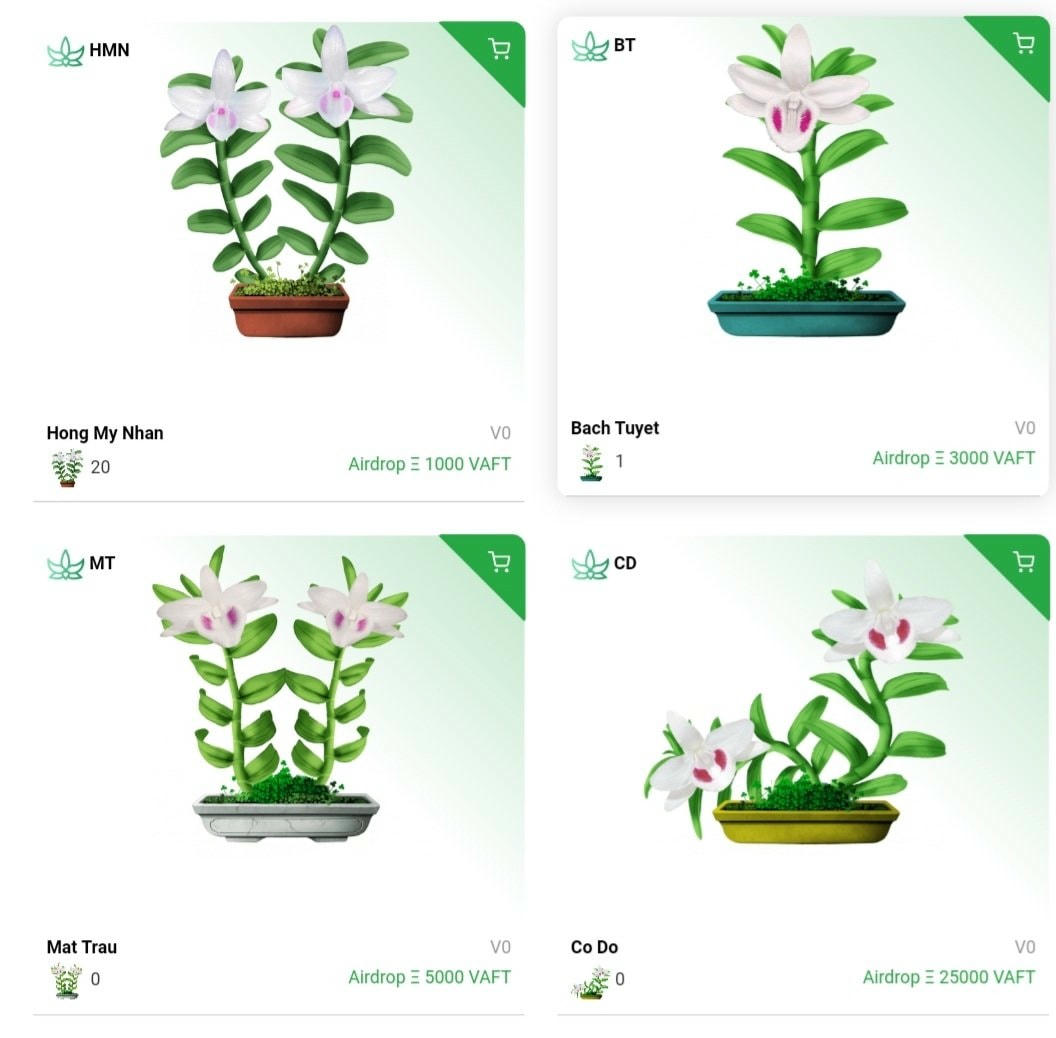 Còn tại Việt Nam, mới đây trên một sàn giao dịch vật phẩm ảo quốc tế, mặt hàng lan đột biến của Việt Nam (mã hóa thành tài sản NFT) được rao bán rộng rãi với khoảng 100 mặt hàng. Nhiều chủng loại lan đột biến NFT như: Phú Thọ, Ngọc Sơn Cước, Hồng Yên Thủy,...được “bày bán” dao động ở mức giá khoảng 1.000 USD. Khách mua có thể thông qua đấu giá hoặc mua trực tiếp, đơn vị giao dịch là đồng tiền điện tử Ethereum (ETH).