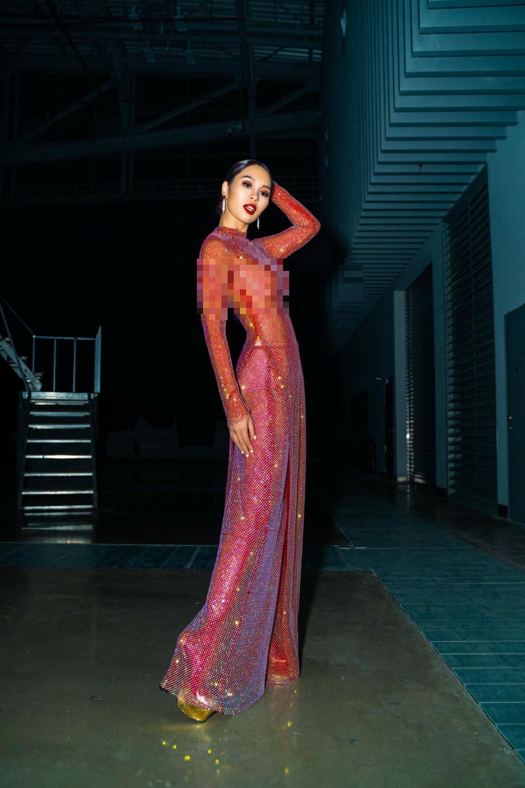 Dưới ánh đèn flash, thiết kế này "phản chủ" khi lộ phụ kiện che chắn vòng một, tạo nên hình ảnh không đẹp trước công chúng. Sau đó, nữ siêu mẫu lý giải rằng khi thử ở ánh sáng tự nhiên, thiết kế này đẹp và kín đáo. Tuy nhiên, cơ thể của Hà Anh lại bị lộ ở những điểm nhạy cảm.
