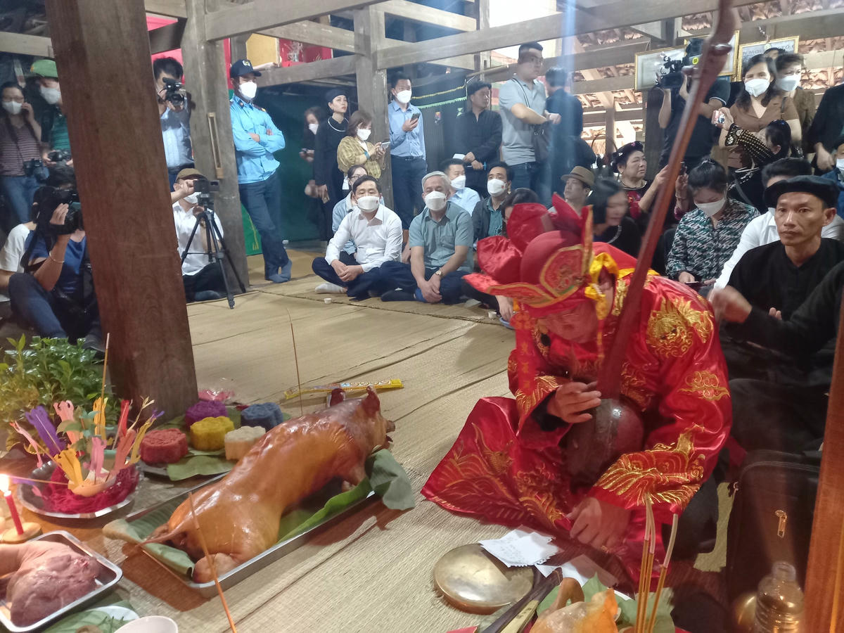 Trong khuôn khổ chào mừng Ngày “Văn hóa các dân tộc Việt nam” năm 2022, sáng 16/4, đồng bào dân tộc Tày (huyện Phú Lương, tỉnh Thái Nguyên) đã tổ chức tái hiện hiện nghi Lễ cầu phúc, cầu an tại không gian Làng Văn hóa - Du lịch các dân tộc Việt Nam.