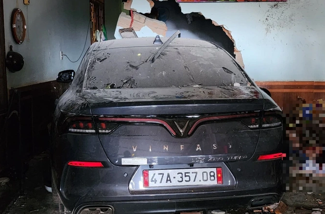 Khi xe lưu thông đến ngã ba đường đã bất ngờ lao thẳng vào hai nhà dân, tông sập tường, lao thẳng vào phòng khách của gia đình ông B.Đ.P. (57 tuổi). Thời điểm này, ông P. đang nằm ngủ trên ghế và bị xe tông chết tại chỗ.