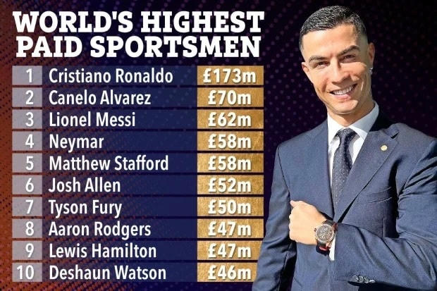 Nhưng giờ đây Ronaldo có thể kiếm được nhiều hơn 100 triệu bảng so với một VĐV nam giới kiếm được nhiều tiền nhất trong tất cả các môn thể thao.