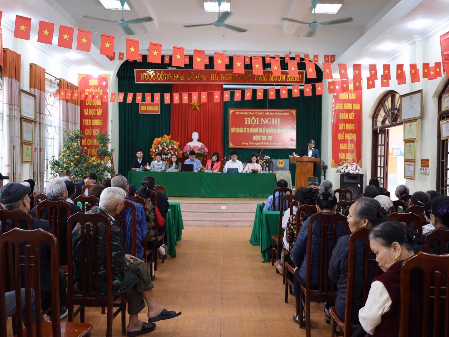 Đối với cấp xã, toàn xã Tam Hưng tổ chức 6 đơn vị bầu cử, bố trí 23 điểm bỏ phiếu trên địa bàn, với 38 người ứng cử để bầu 23 đại biểu Hội đồng nhân dân xã Tam Hưng nhiệm kỳ mới.