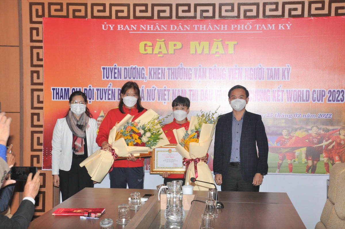 Sáng ngày 25/2, UBND TP Tam Kỳ, tỉnh Quảng Nam đã tổ chức buổi gặp mặt tuyên dương khen thưởng cho 2 vận động viên (VĐV) bóng đá nữ quốc gia Việt Nam quê ở TP Tam Kỳ.
