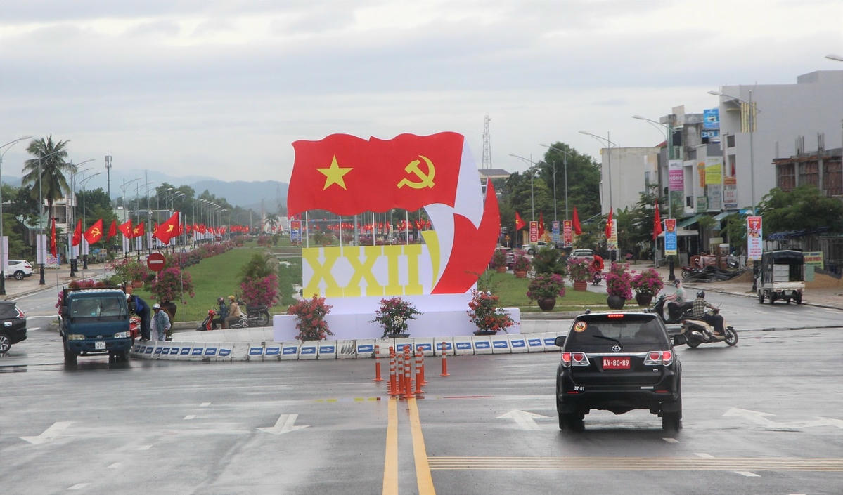Toàn thành phố đã rực rỡ với nhiều cờ Tổ quốc, cờ Đảng, cùng với đó là pano, khẩu hiệu, tuyên truyền chào mừng Đại hội Đảng bộ tỉnh Quảng Nam lần thứ XXII.