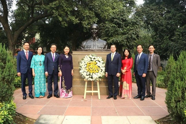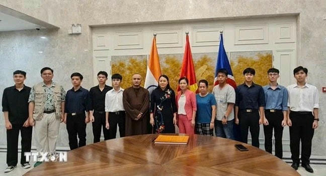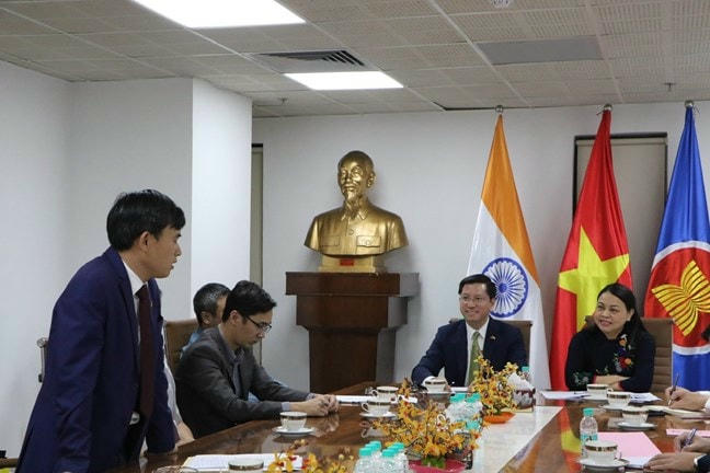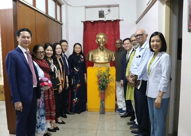 Trước khi triển khai các hoạt động trên, đoàn đã đến dâng hoa tại tượng đài Chủ tịch Hồ Chí Minh ở thủ đô New Delhi.