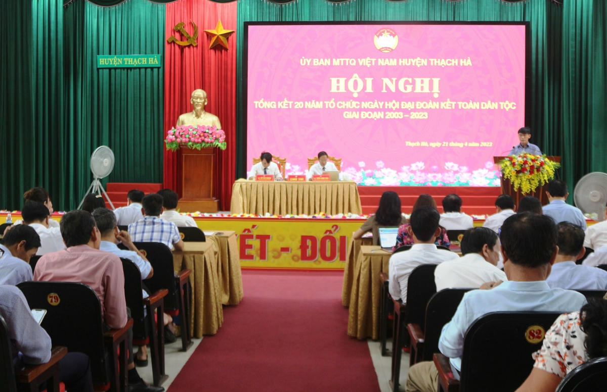 Phát biểu tại hội nghị, Chủ tịch Ủy ban MTTQ Việt Nam tỉnh Hà Tĩnh Trần Nhật Tân biểu dương quá trình tổ chức Ngày hội Đại đoàn kết toàn dân của huyện Thạch Hà. “Tỉnh đánh giá rất cao việc đổi mới nội dung, hình thức tổ chức Ngày hội Đại đoàn kết toàn dân tộc của huyện Thạch Hà trong những năm qua. Đề nghị huyện tiếp tục phát huy những thành quả đã thực hiện và có cách làm sáng tạo, thiết thực, ý nghĩa trong giai đoạn tiếp theo”, ông Trần Nhật Tân nói.