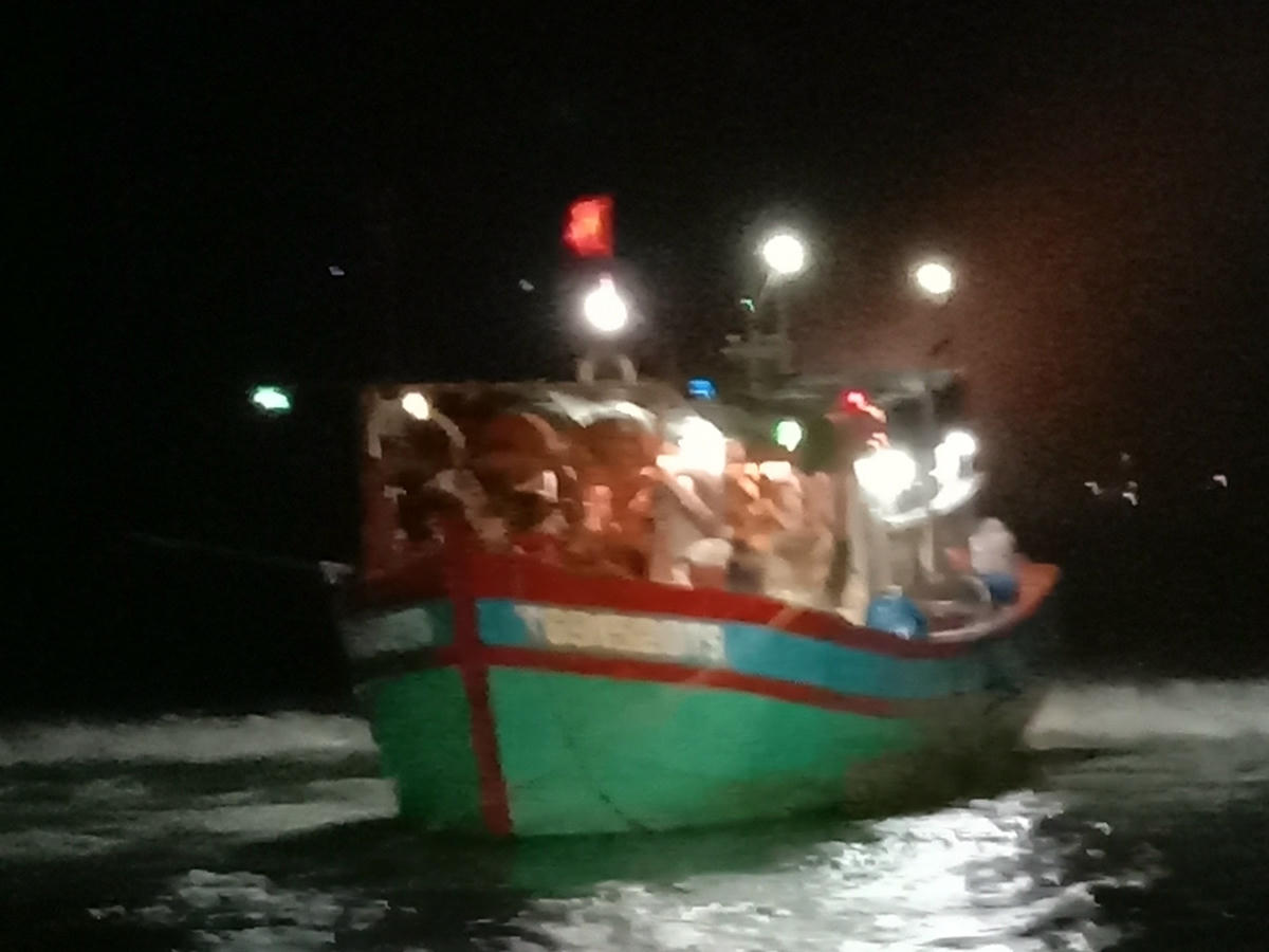 Trước tình hình này, thuyền trưởng tàu cá TG 91520 TS đã liên hệ với Đồn biên phòng Lý Sơn, Trạm Cảnh sát biển vùng 2, Nghiệp đoàn nghề cá xin được ứng cứu.