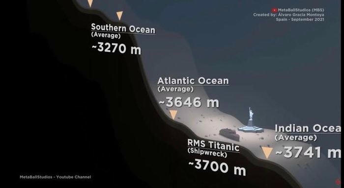 Một video 3D do công ty Tây Ban Nha MetaBallStudio tạo ra cho người xem thấy độ sâu lớn đến mức nào ở nơi có thể có tàu lặn mất tích, theo tờ New York Post.