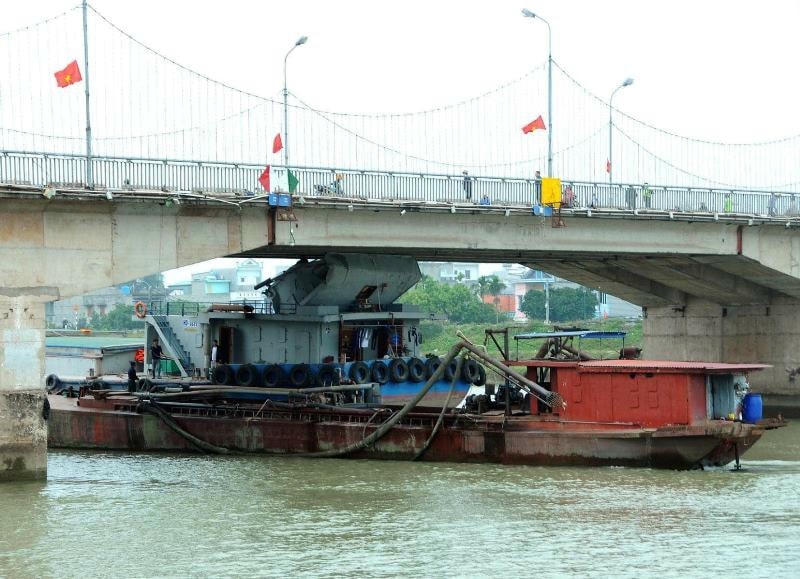 Tàu thủy đâm nứt vỡ bê tông dầm cầu Thái Bình