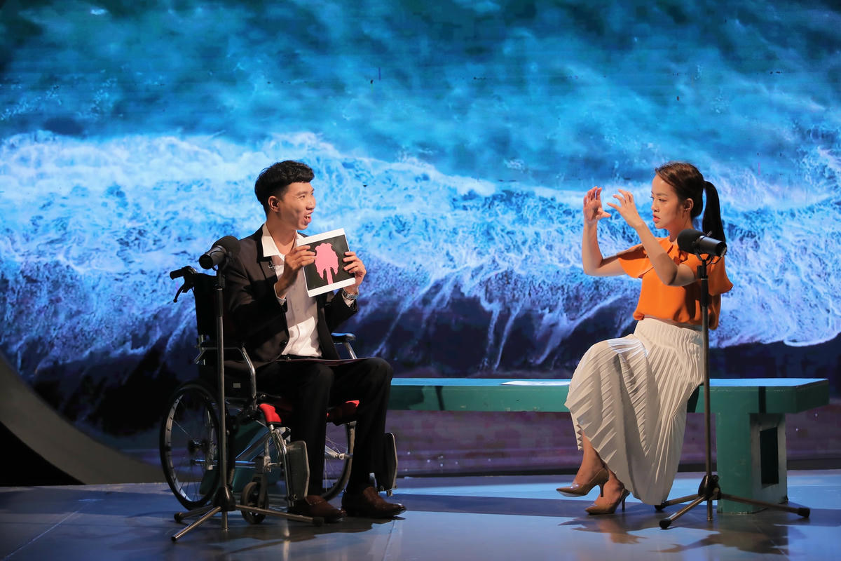 Điểm mới đầu tiên của "Trạm yêu thương" tuần này là màn “đổi vai” ngay ở đầu chương trình. Thông thường, sau phần chào đầu của khách mời khi xuất hiện trên sân khấu "Trạm yêu thương", MC của chương trình sẽ đưa ra chùm câu hỏi trắc nghiệm tâm lý giúp khán giả phần nào hiểu được tính cách của nhân vật, bên cạnh đó giúp khách mời tự tin, cởi mở hơn. Thế nhưng, vị trí đó đã được hoán đổi, vì khách mời số này là thạc sĩ tâm lý Đặng Hoàng An. Anh xuất hiện cùng giọng nói ấm áp quen thuộc trên sóng radio giới thiệu về bản thân, về vòng tròn của cuộc sống và về đôi chân tròn đặc biệt của mình.
