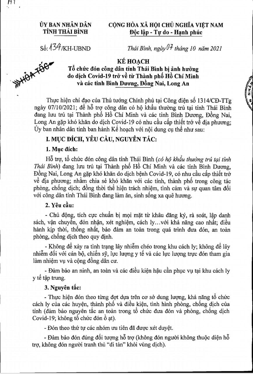 Kế hoạch đón công dân được chính quyền Thái Bình đưa ra trong bối cảnh do ảnh hưởng của dịch Covid-19, những ngày qua rất nhiều người, nhiều trường hợp là cả gia đình ở TP Hồ Chí Minh và một số tỉnh phía Nam đã rời bỏ về quê bằng phương tiện cá nhân trong điều kiện khó khăn, vất vả, nguy hiểm…