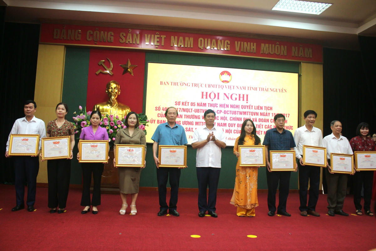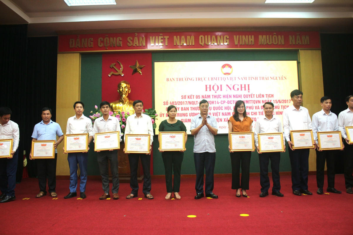 Nhân dịp này, Chủ tịch Uỷ ban MTTQ tỉnh Thái Nguyên Phạm Thái Hanh đã Quyết định tặng bằng khen của Uỷ ban MTTQ tỉnh Thái Nguyên cho 32 tập thể, 25 cá nhân có thành tích xuất sắc trong tổ chức thực hiện Nghị quyết liên tịch số 403, giai đoạn 2018-2022.