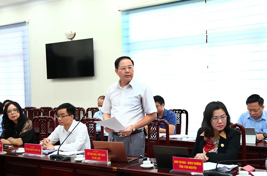Tại hội nghị, các đại biểu tham dự đã đóng góp nhiều ý kiến vào nội dung dự thảo Nghị quyết. Đồng thời nêu những dẫn chứng cụ thể và phân tích, đánh giá về những tác động có thể xảy ra do những thay đổi từ nghị quyết. Đối với nội dung quy định mức thưởng thuộc lĩnh vực Văn học – Nghệ thuật (VNNT), đối tượng mà dự thảo Nghị quyết xây dựng là tác giả, nhóm tác giả thuộc tỉnh Thái Nguyên có tác phẩm Văn học – Nghệ thuật đoạt giải Vàng, Bạc, Đồng (hoặc Nhất, Nhì, Ba và tương đương) tại các kỳ thi, cuộc thi quốc tế; các kỳ thi, cuộc thi quốc gia do Bộ Văn hoá Thể thao và Du lịch tổ chức.