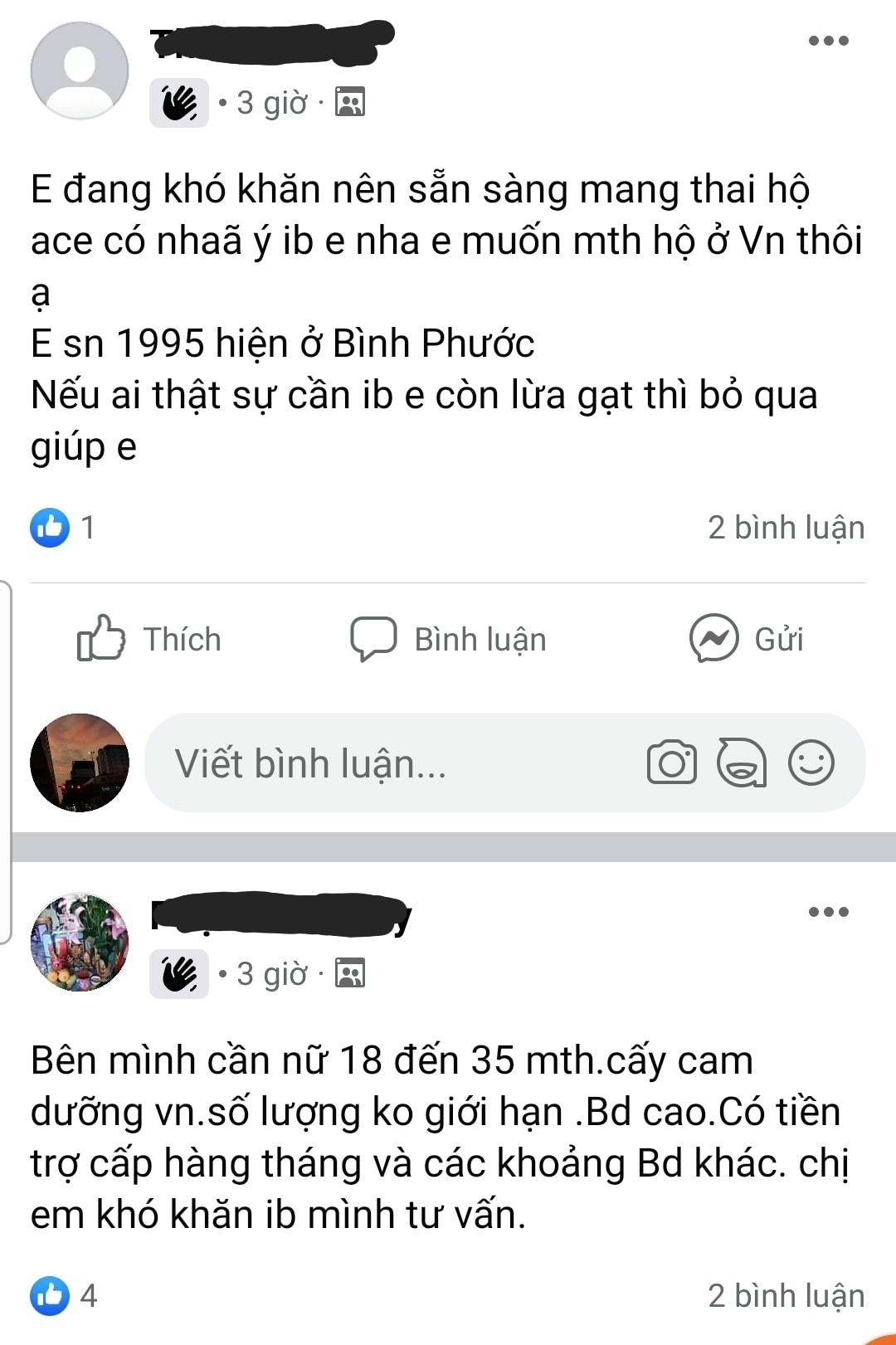 Đáng nói, trong nhóm cũng có nhiều phụ nữ sẵn sàng đăng bài với mong muốn mang thai hộ bất hợp pháp với lí do khó khăn về kinh tế, cần tiền trang trải cuộc sống…