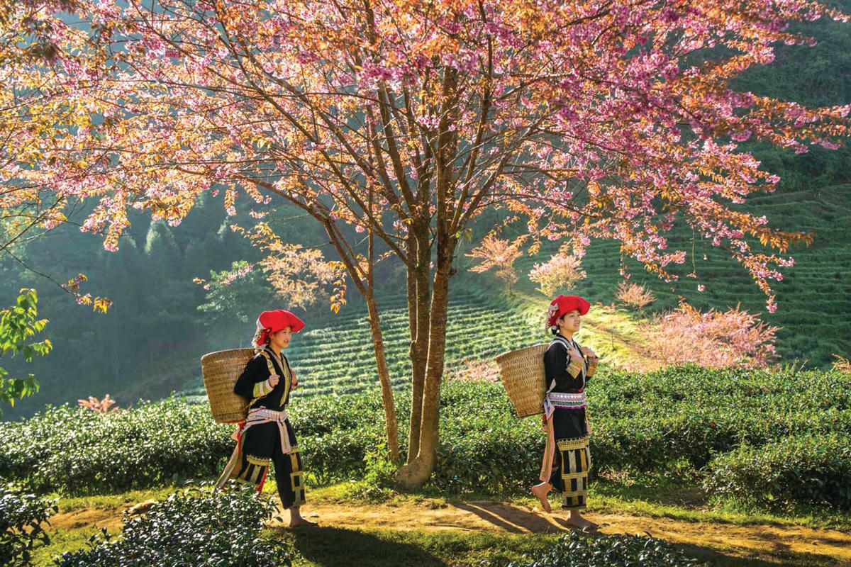 Cũng từ dăm năm nay, mỗi dịp Giáng sinh, Tết đến, thị trấn Sa Pa lại tấp nập hơn. Mỗi mùa hoa anh đào, hàng vạn du khách lại đến thị trấn xinh đẹp này, đông nhất là các bạn trẻ. Địa điểm mà nhiều người tìm đến nhất đó là những đồi chè Ô Long xanh ngút tầm mắt, phía trên những cây anh đào bung hoa khoe sắc hồng trong nắng…