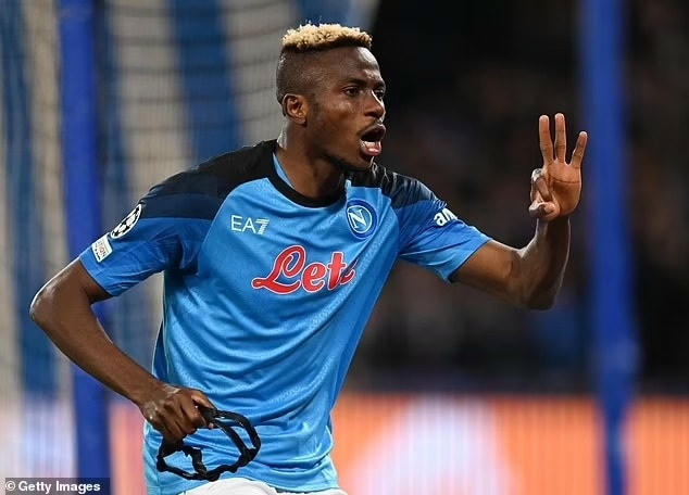 Phút bù giờ 45+2, từ quả tạt của đồng đội bên cánh phải, tiền đạo Victor Osimhen bật cao đánh đầu mở tỷ số cho đội chủ nhà.