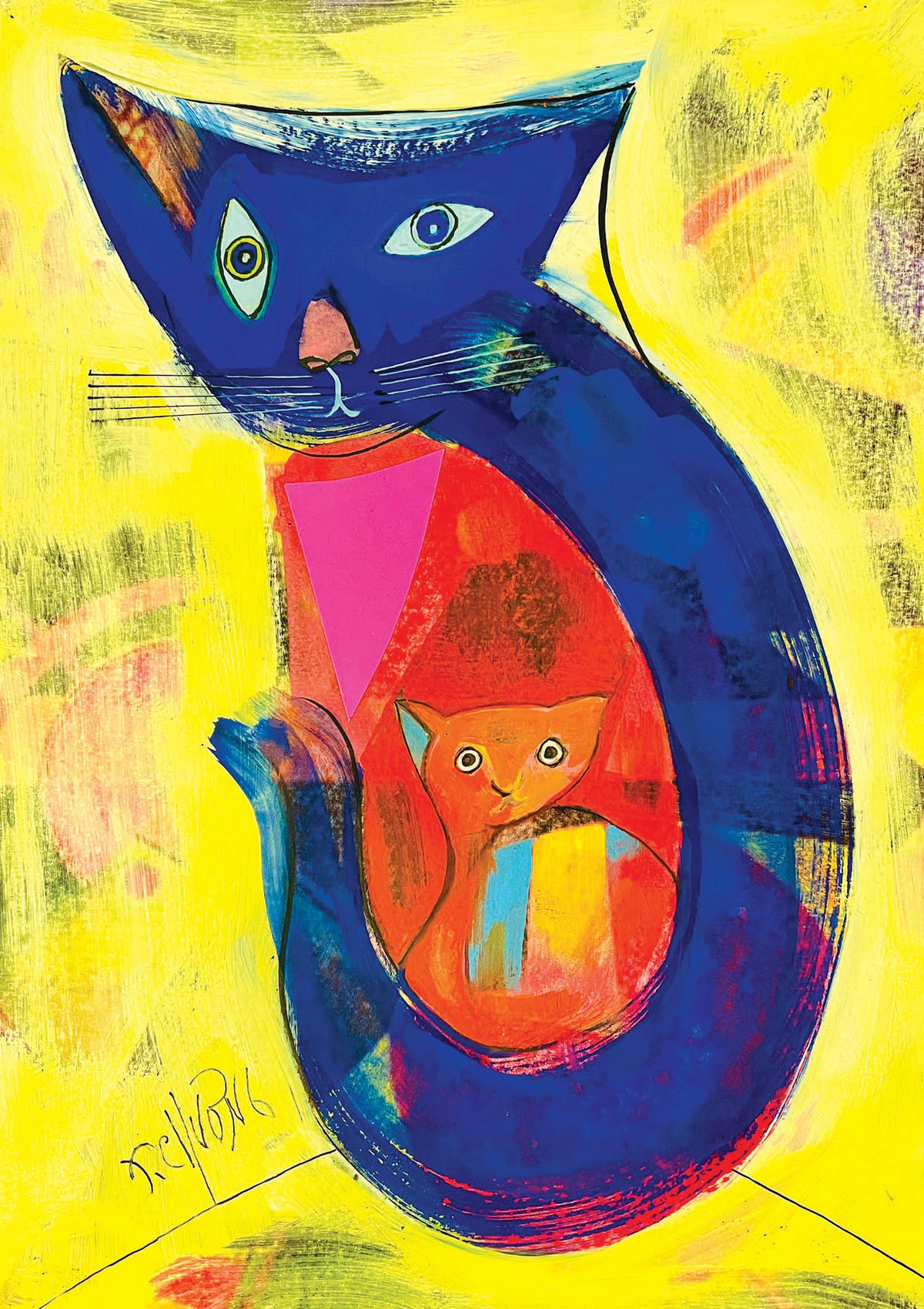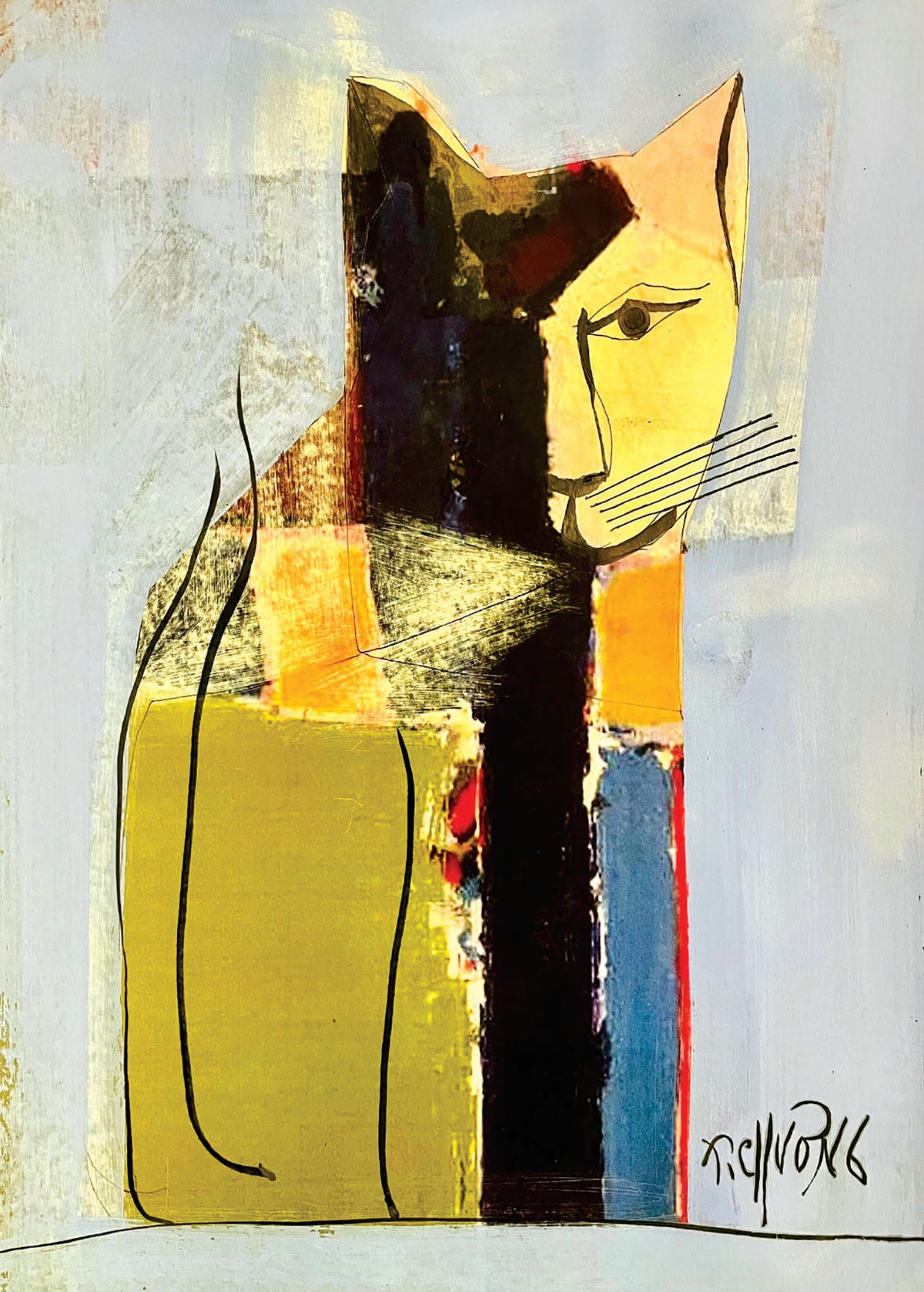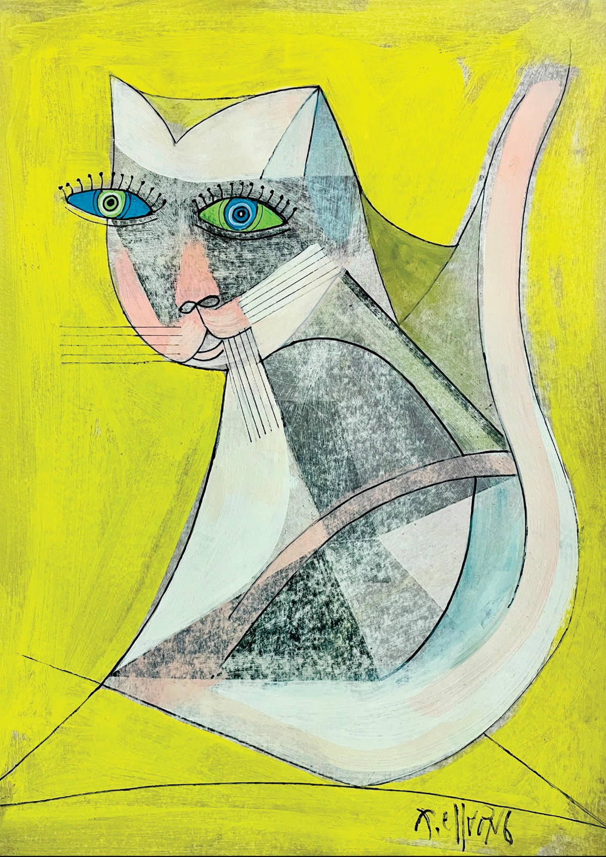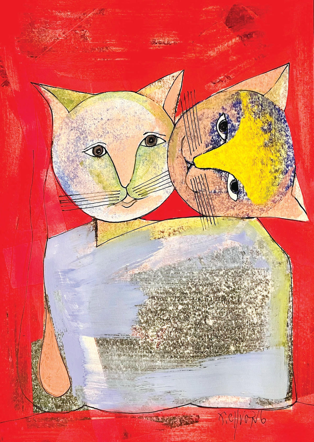Một đêm khá muộn, qua Zalo, Thành Chương gửi cho tôi bức tranh mèo, kèm dòng nhắn: “Vừa vẽ xong”. Đêm sau, cũng rất muộn, tôi lại nhận được một bức tranh mèo nữa từ họa sĩ…