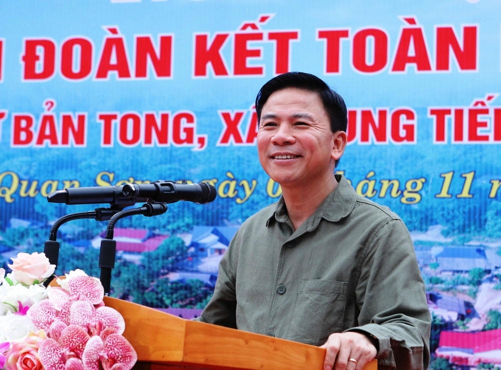 Thay mặt cho lãnh đạo tỉnh Thanh Hóa, ông Đỗ Trọng Hưng chúc mừng, biểu dương những thành tích bản Tong và xã Trung Tiến đạt được trong thực hiện nhiệm vụ thời gian qua.