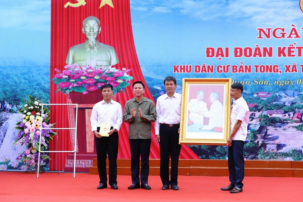 Nhân dịp này, thay mặt lãnh đạo tỉnh, ông Đỗ Trọng Hưng đã tặng Nhân dân và cán bộ bản Tong bức ảnh Chủ tịch Hồ Chí Minh bắt tay Chủ tịch Tôn Đức Thắng - một biểu tượng cao đẹp, thiêng liêng của khối đại đoàn kết toàn dân tộc.