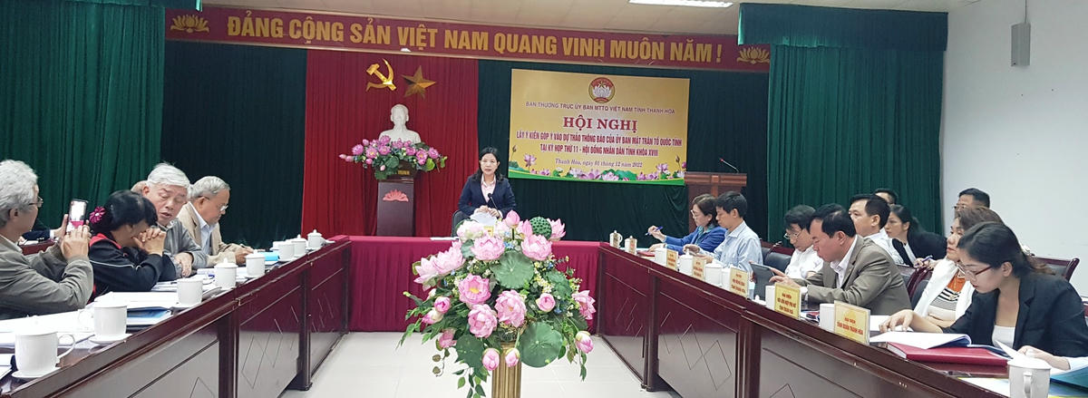 Sáng ngày 1/12, Ban thường trực Ủy ban MTTQ tỉnh Thanh Hóa đã tổ chức hội nghị lấy ý kiến góp ý vào Dự thảo thông báo của Ủy ban MTTQ tỉnh tại Kỳ họp thứ 11 – HĐND tỉnh Thanh Hóa khóa XVIII.