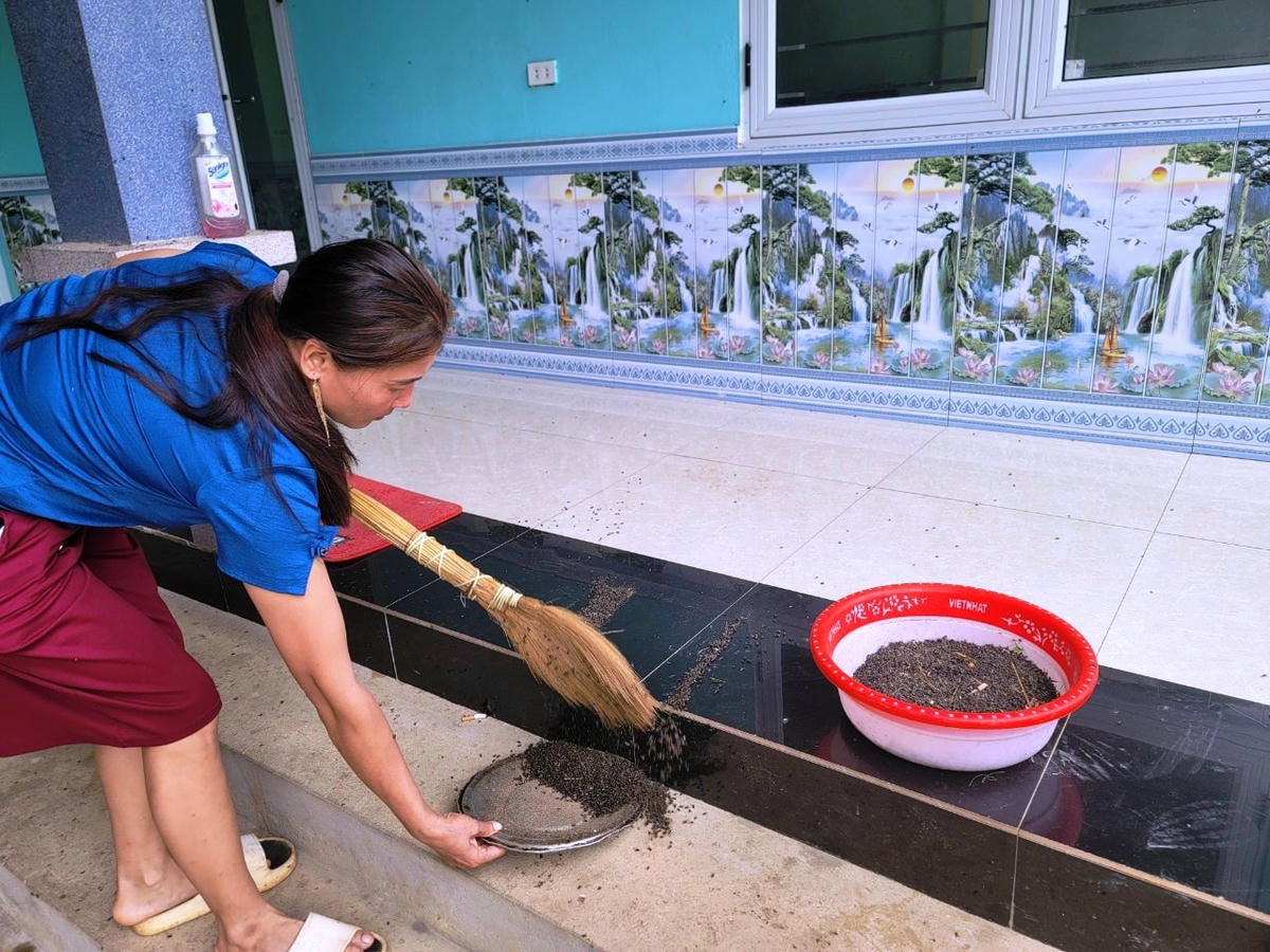 Gặp chúng tôi khi đang quét những mảng xác ruồi đen đặc trên nền nhà đổ vào một chiếc chậu để đem đi tiêu hủy, ông Trương Văn Diệu – một người dân trú tại thôn Đồng Hội, xã Thành Công cho biết: Khoảng gần 2 tháng nay, hàng triệu con ruồi xuất hiện và xâm nhập vào khu dân cư tấn công người dân và gia súc, gia cầm. Số lượng ruồi xuất hiện quá nhiều khiến cuộc sống của người dân bị đảo lộn. Tới bữa, khi mọi gia đình dọn cơm ra ăn thì bị ruồi bay vào đậu kín vào cơm và thức ăn. Bất đắc dĩ, ông này đã dùng thuốc diệt ruồi muỗi để phun xuống đất khiến ruồi bị chết, thu gom mỗi ngày được 3-4kg.