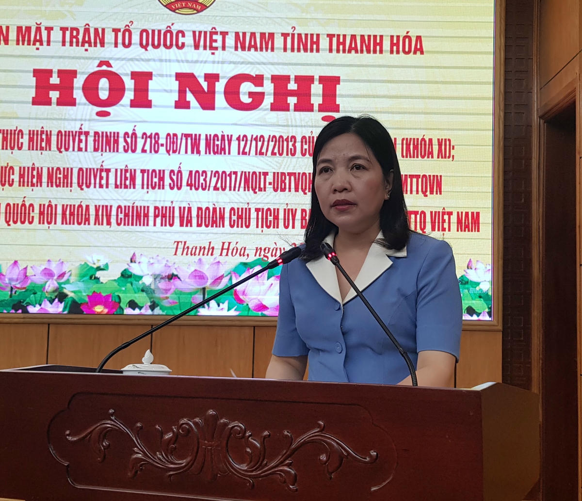 Phát biểu kết luận hội nghị, Trưởng Ban Dân vận, Chủ tịch Ủy ban MTTQ tỉnh Thanh Hóa Phạm Thị Thanh Thủy ghi nhận, đánh giá cao và biểu dương những đóng góp, cống hiến của các cơ quan, đơn vị, địa phương trong việc thực hiện Quyết định 218, Nghị quyết liên tịch số 403 trong thời gian qua.