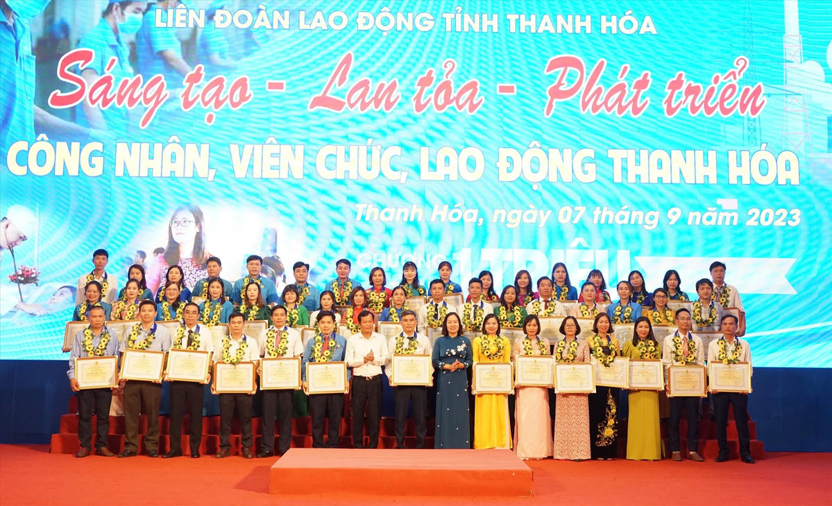 Trong khuôn khổ hội nghị, đại diện lãnh đạo Tổng LĐLĐ Việt Nam, Tỉnh ủy Thanh Hóa và LĐLĐ tỉnh Thanh Hóa đã trao Bằng khen cho 247 tập thể, cá nhân có thành tích xuất sắc trong Chương trình “1 triệu sáng kiến - nỗ lực vượt khó, sáng tạo, quyết tâm chiến thắng đại dịch Covid-19”.