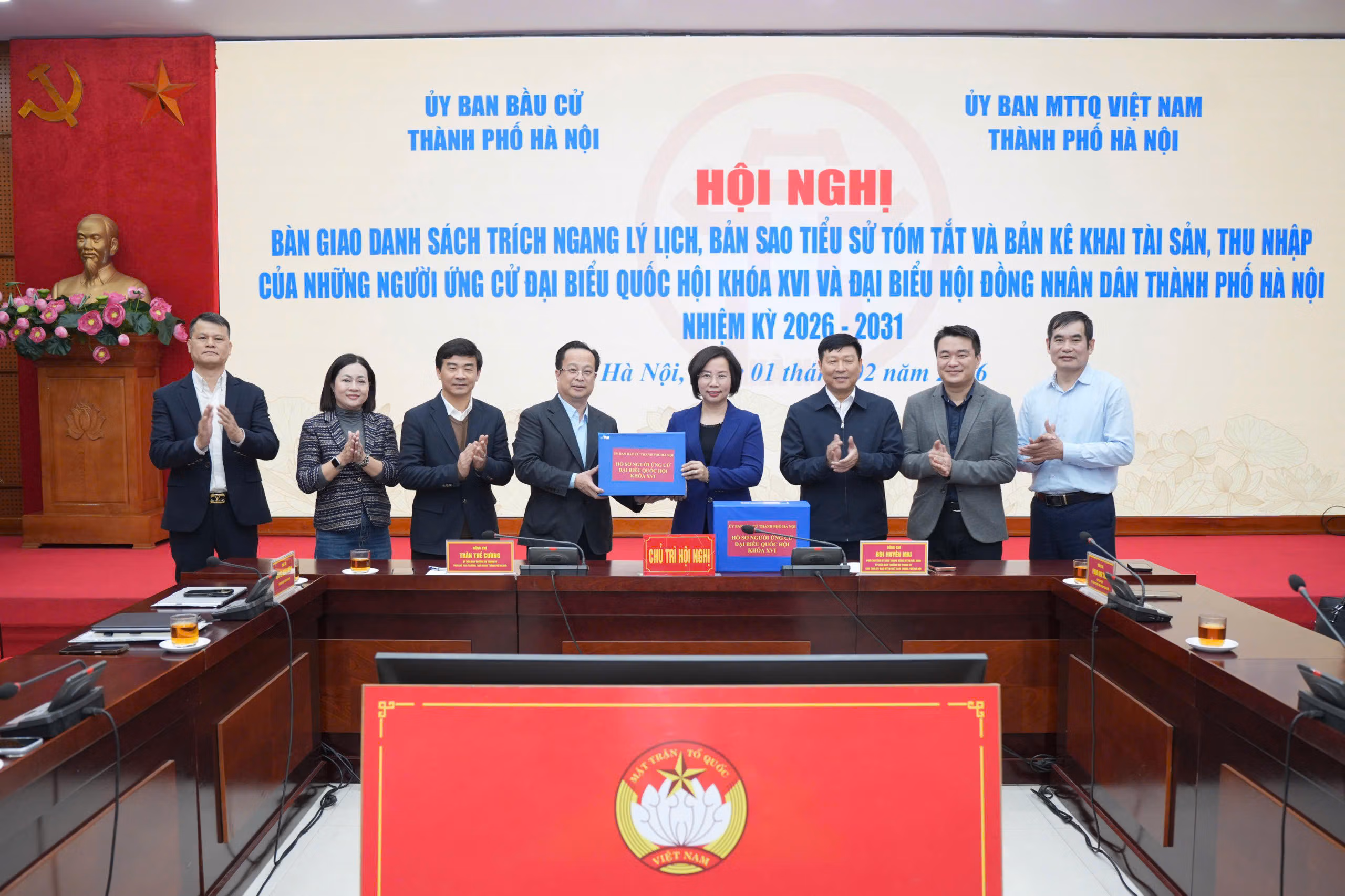 20h ngày 1/2, tại Trụ sở Ủy ban MTTQ Việt Nam thành phố Hà Nội đã diễn ra Hội nghị bàn giao danh sách trích ngang lý lịch, bản sao tiểu sử tóm tắt và bản kê khai tài sản, thu nhập của những người ứng cử đại biểu Quốc hội khóa XVI và đại biểu HĐND thành phố Hà Nội nhiệm kỳ 2026-2031.